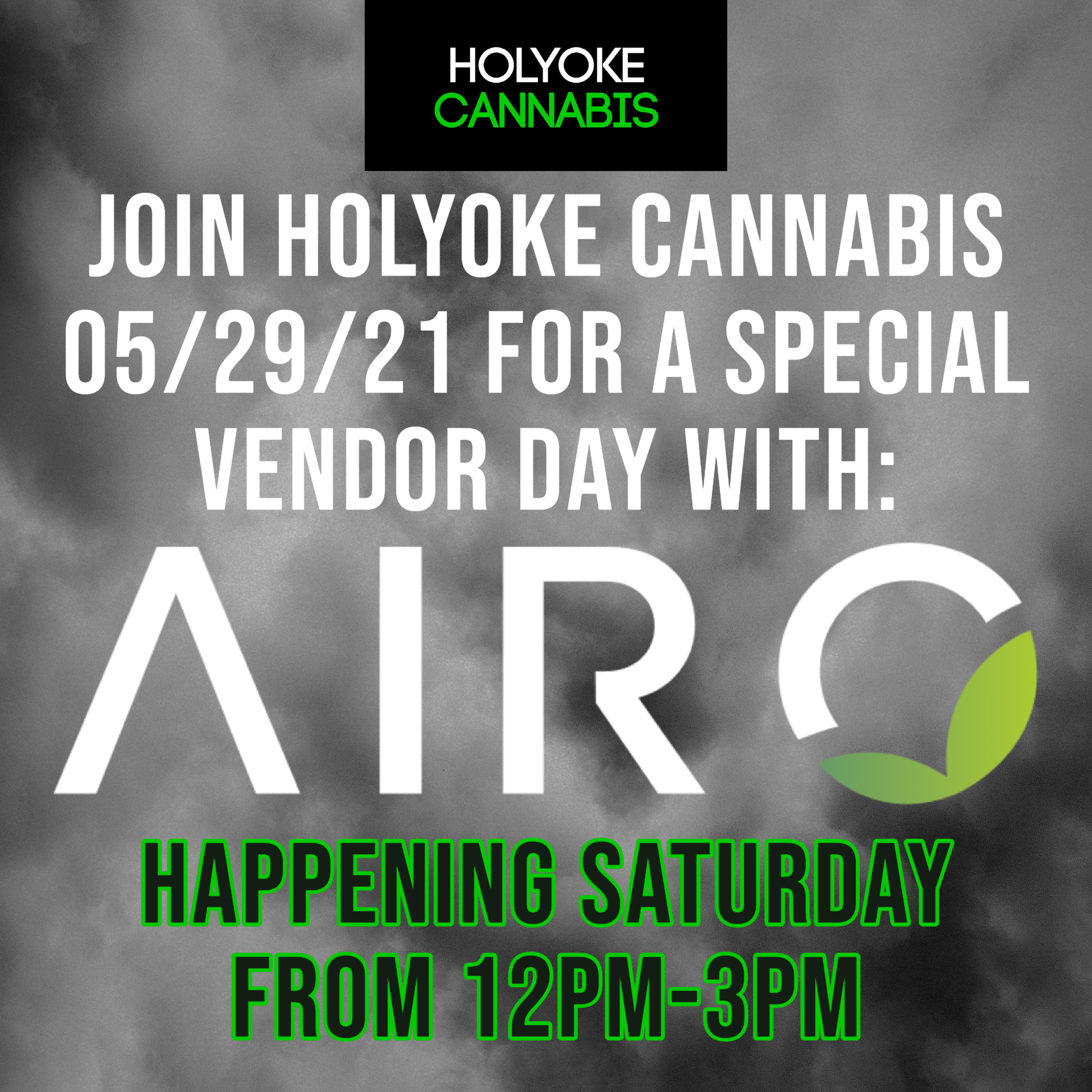 Join Holyoke Cannabis on 05/29/21 for a fun filled Vendor Day Event! Learn about AIRO Brands, checkout SWAG, and grab some of your favorite AIRO Flavors!