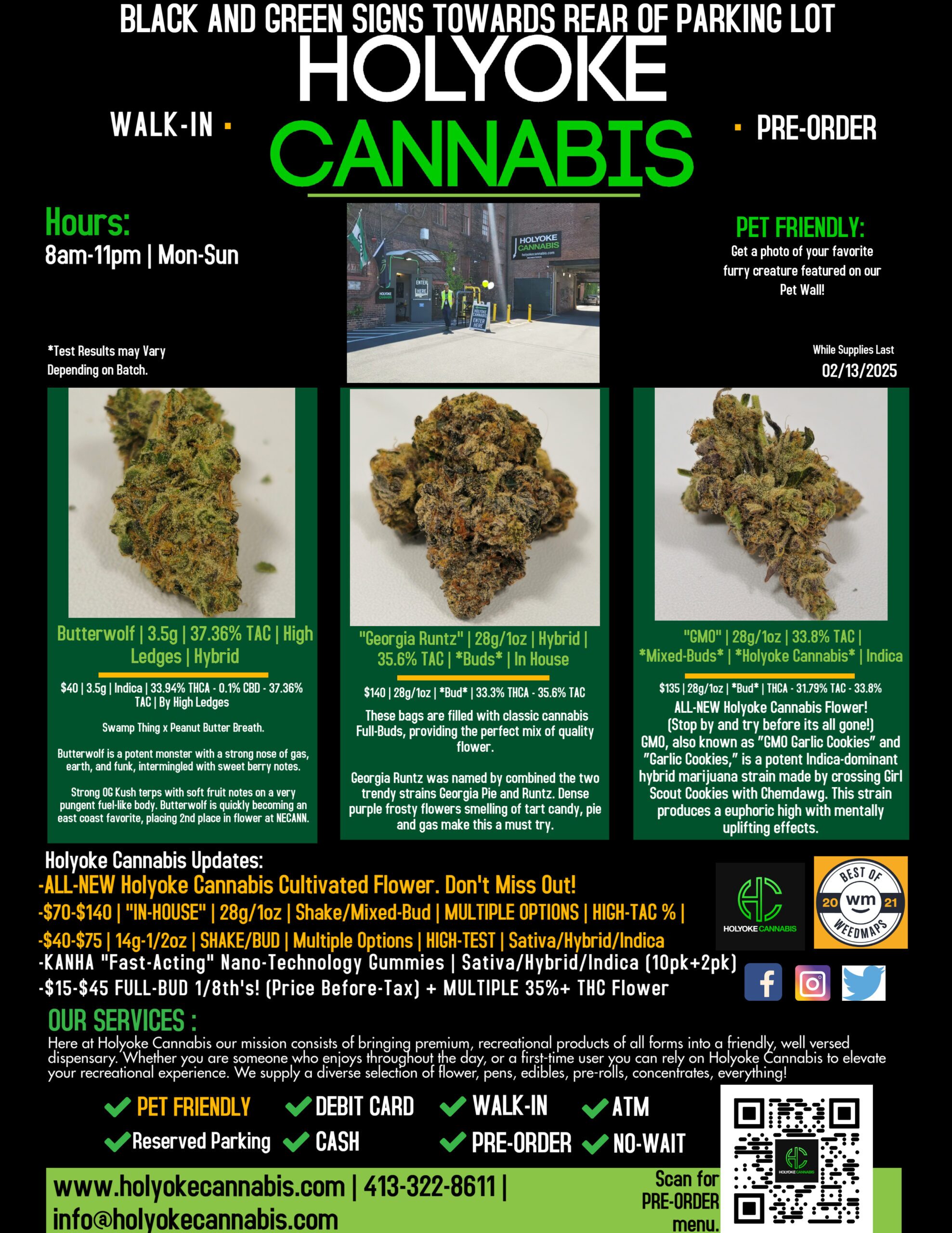 What’s good Holyoke Cannabis tokers? Today we’ll be highlighting some of our favorite brands and products including “Butterwolf” Flower by High Ledges, “Georgia Runtz” 28g/1oz *Bud* by In House and “GMO” 28g/1oz *Bud* by Holyoke Cannabis! If you’re not really into flower, there’s tons of concentrate options at Holyoke Cannabis Dispensary you can check out HERE.