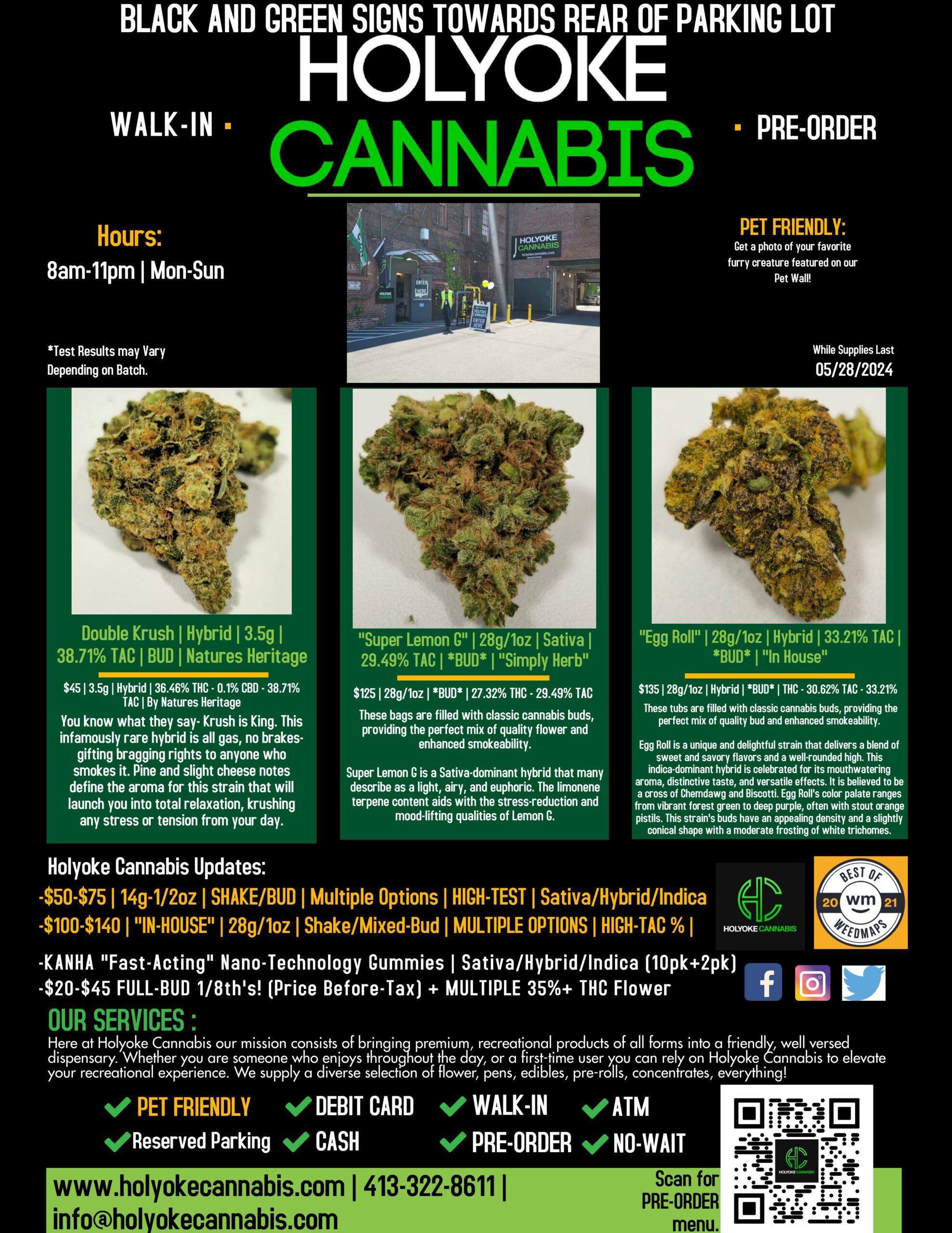 What’s good Holyoke Cannabis tokers? Today we’ll be highlighting some of our favorite brands and products including “Double Krush” Flower by Natures Heritage. “Super Lemon G” 28g/1oz *BUD* by Simply Herb and “Egg Roll” 28g/1oz *BUD* by Simply Herb. If you’re not really into flower, there’s tons of concentrate options at Holyoke Cannabis Dispensary you can check out HERE.