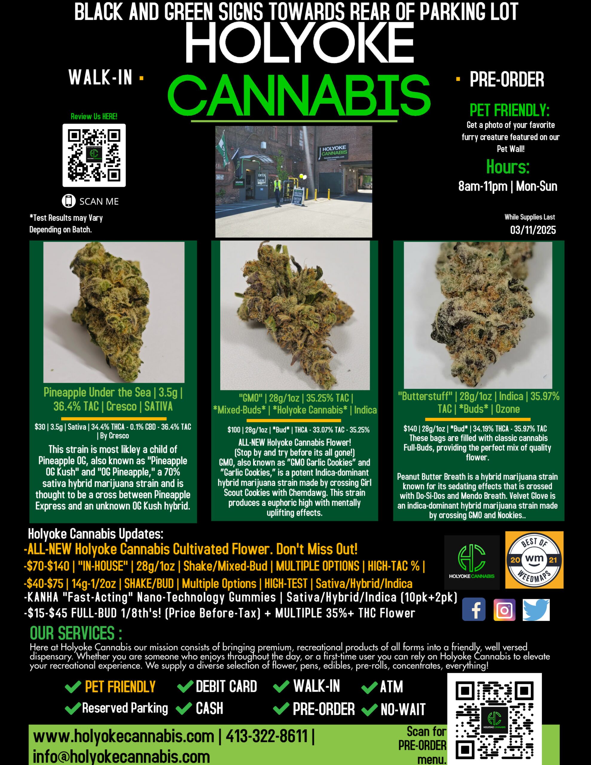Have you had the chance to checkout the Full List of ”28g/1oz, 14g, and 7g Flower and Pre-ground Options!” section of our Pre-order menu? These Options change often, so don’t forget to stay up to date on your budtenders favorite products!