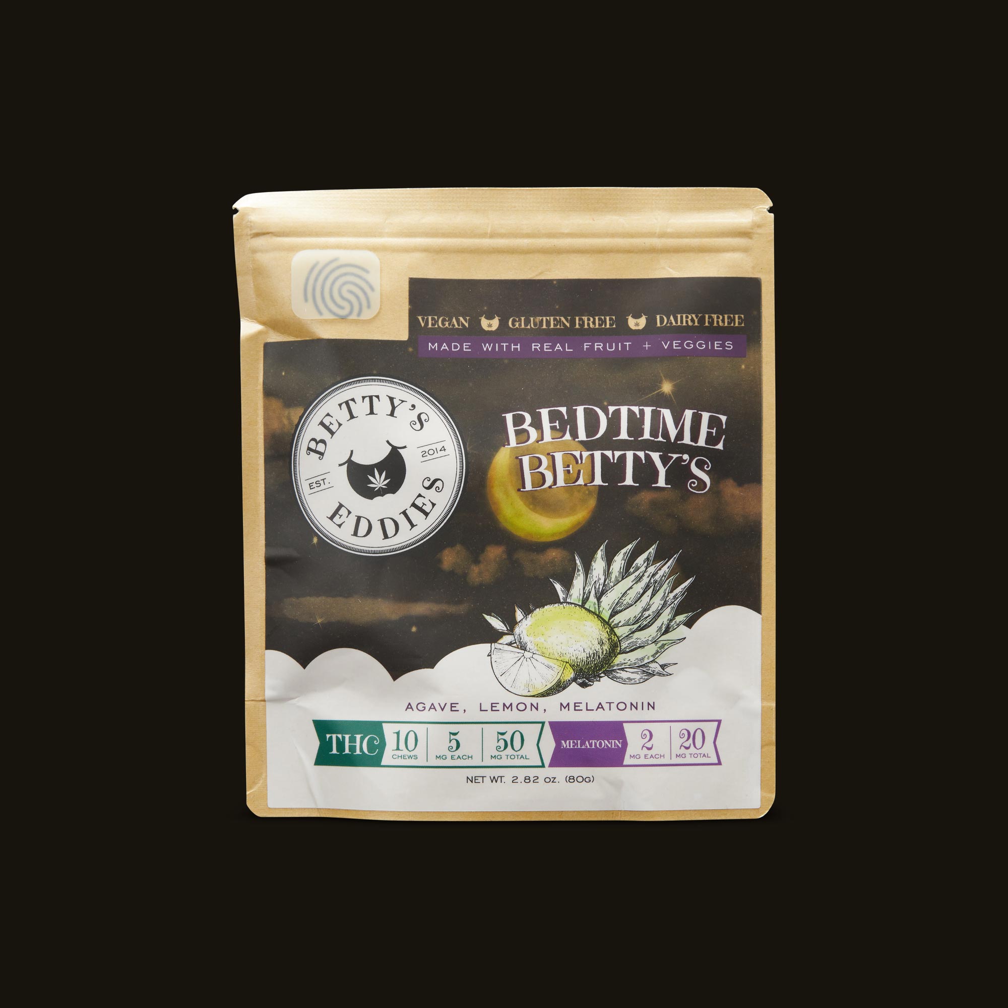 Each bag of “Bedtime Betty’s” contains (10) total Taffy style chews, each individually wrapped. Each taffy chew contains 5mg of THC and 2mg of Melatonin. “Bedtime Betty’s” are flavored with the highest-quality ingredients, using agave and lemon for a sweet taste.