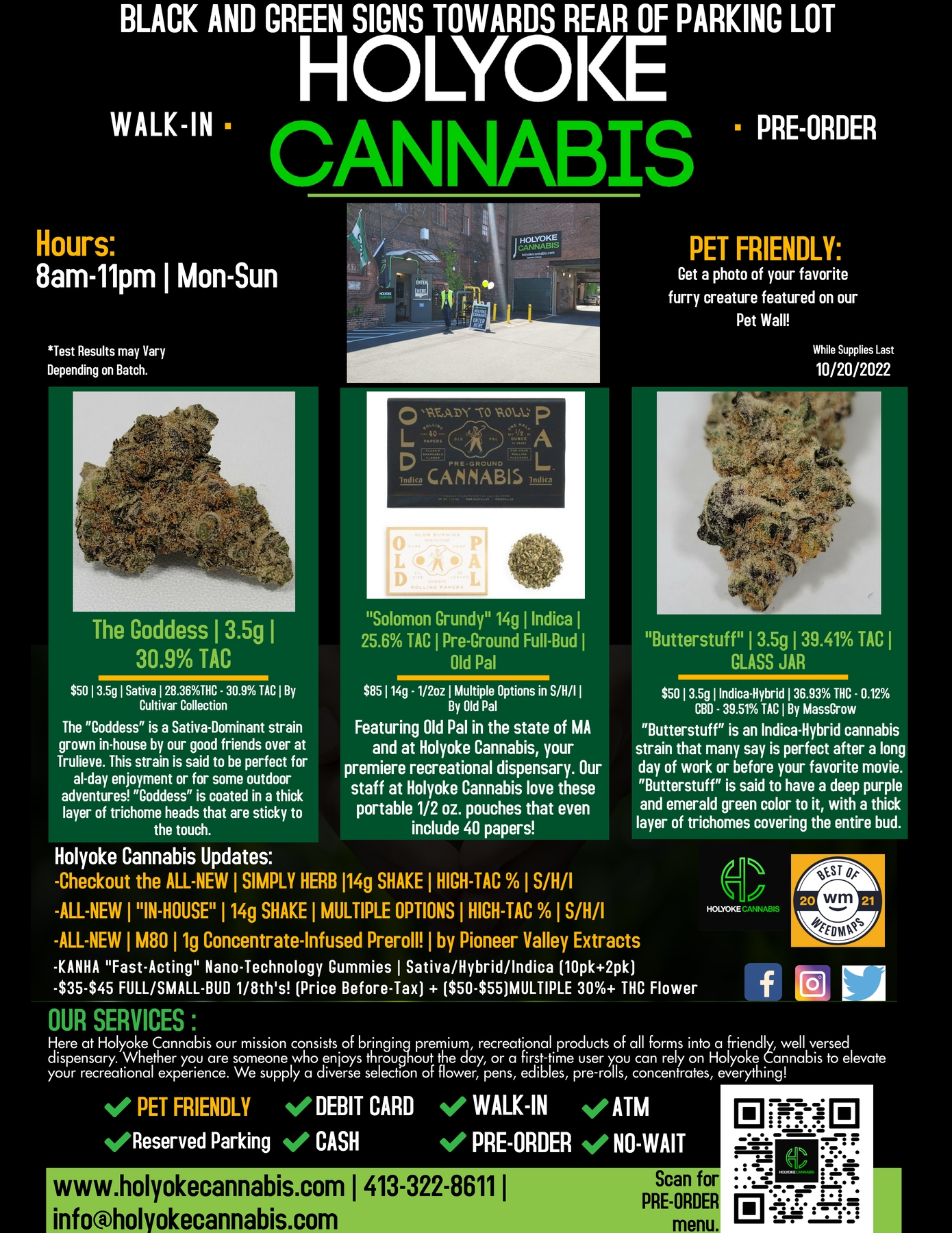 ¿Qué es bueno Holyoke Cannabis tokers? Hoy vamos a destacar algunas de nuestras marcas y productos favoritos, incluyendo “Butterstuff” Flower” por MassGrow, “The Goddess” Sativa-Flower by Cultivar Collection y “Solomon Grundy`” 14g Old Pal Bag por Commonwealth Alt Care and Old Pal. If you’re not really into flower, there’s tons of concentrate options at Holyoke Cannabis Dispensary you can check out AQUÍ.