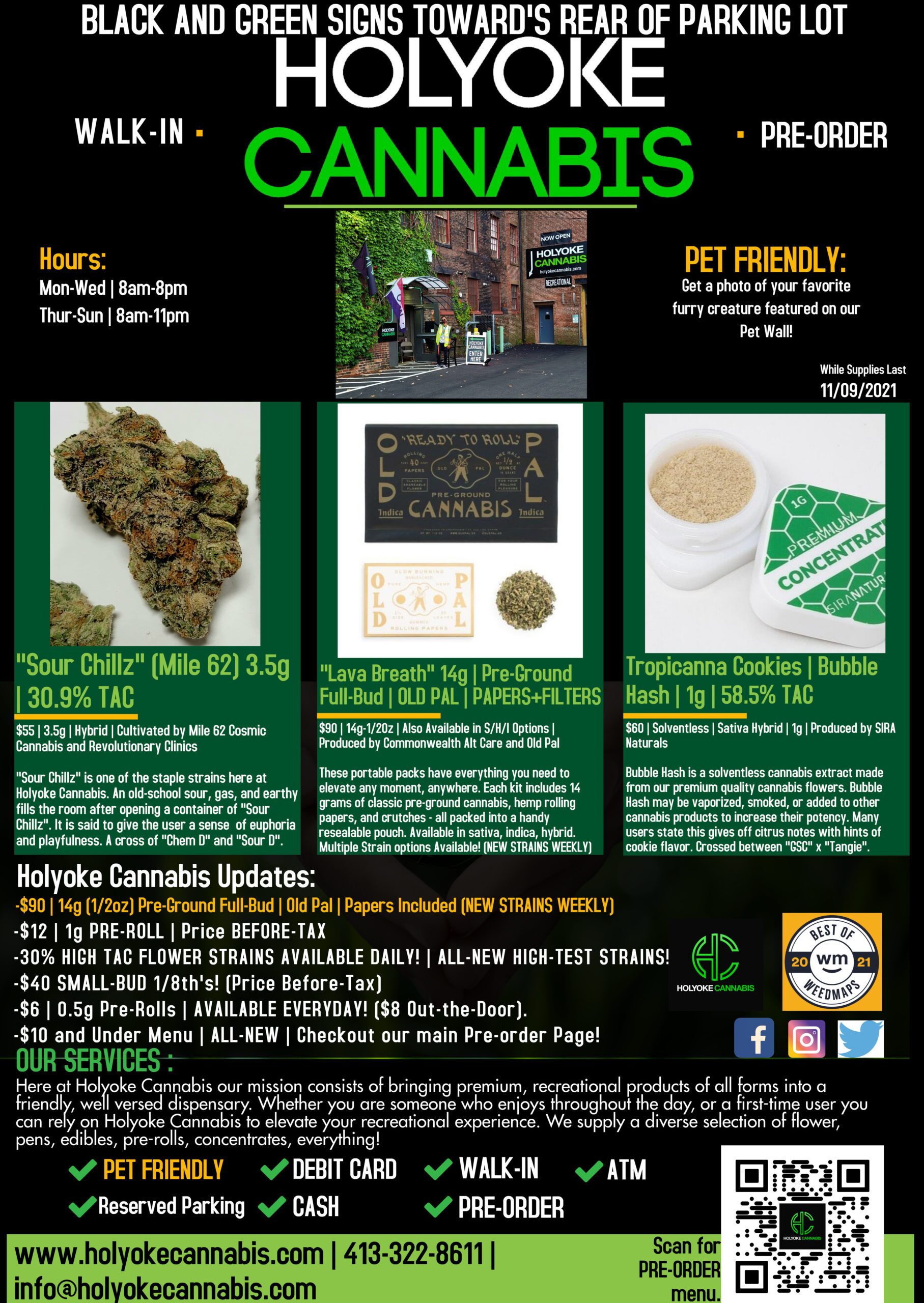Holyoke Cannabis Dispensary 11/09/21: NEW High-Test Flower and Solventless Bubble-Hash