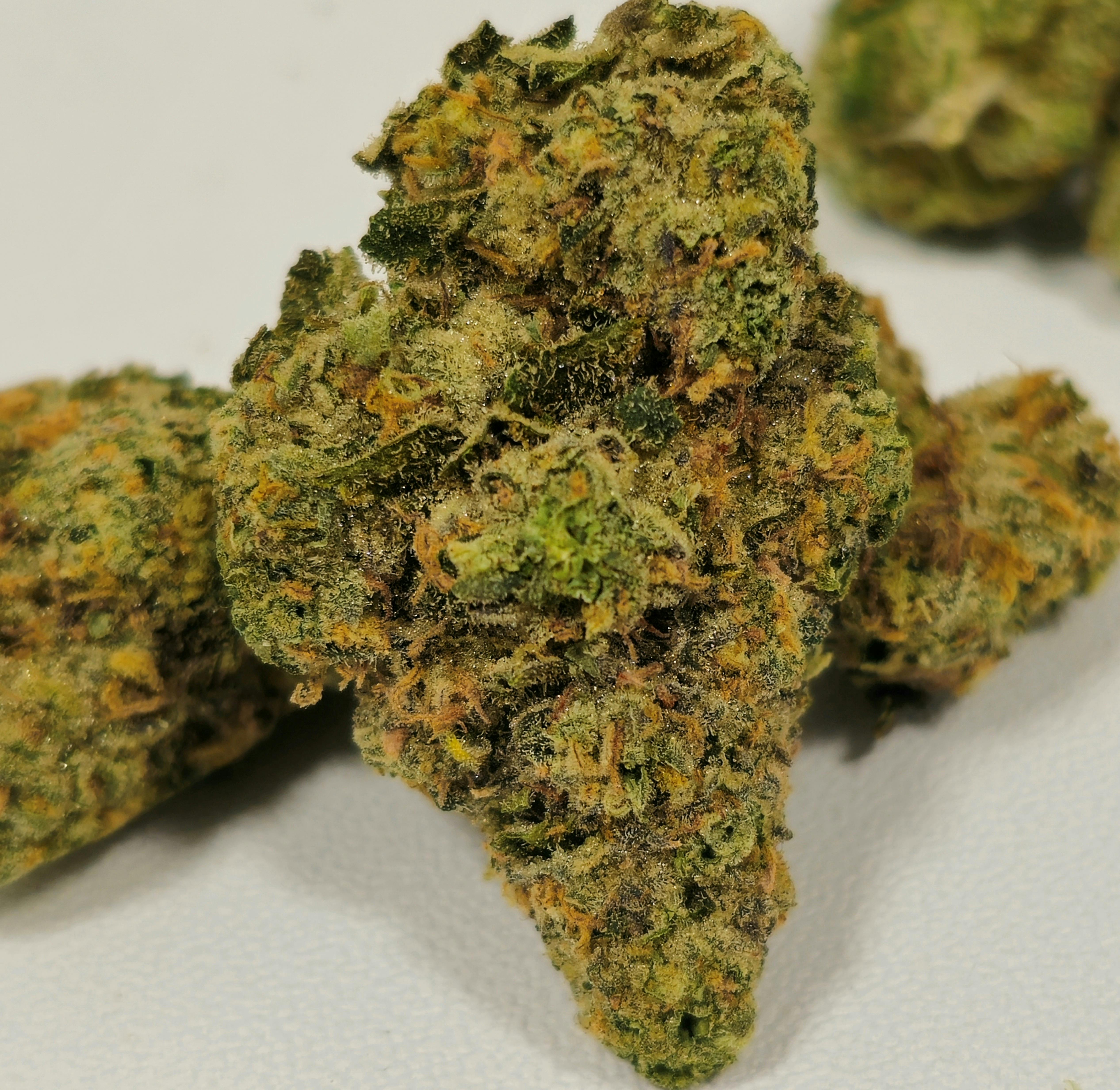 Superboof is a zingy hybrid weed strain made by crossing Black Cherry Punch and Tropicana Cookies. It has the same chunky, deep green buds as its parents that look wet with silver calyxes. The effects of Super Boof are believed to be intensely relaxing and giggly.
