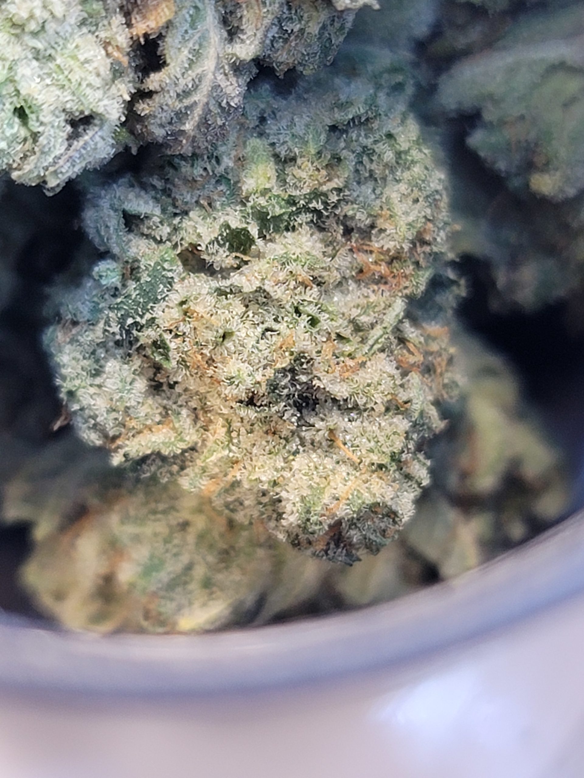 This cross of the popular Wedding Cake and Kush Mints comes from Liberty Health Sciences and Seed Junky Genetics. La Kush Cake is an indica-dominant strain that smells like vanilla and has an earthy peppermint taste. It’s an easy, smooth hitter, and effects take a while to come on. This is a beautiful flower, with green and purple buds covered in frosty trichomes. It’s great for relaxing and winding down at the end of the night without much else to do.