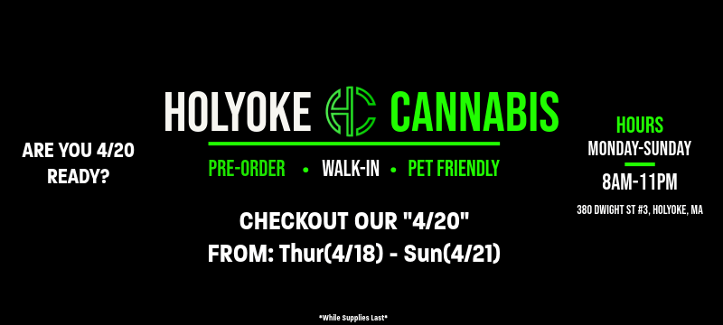 Celebrate 4/20 All-Week Long with Holyoke Cannabis Dispensary. Checkout our 4/20 menu from (04/17-04/23) or while supplies last HERE!
