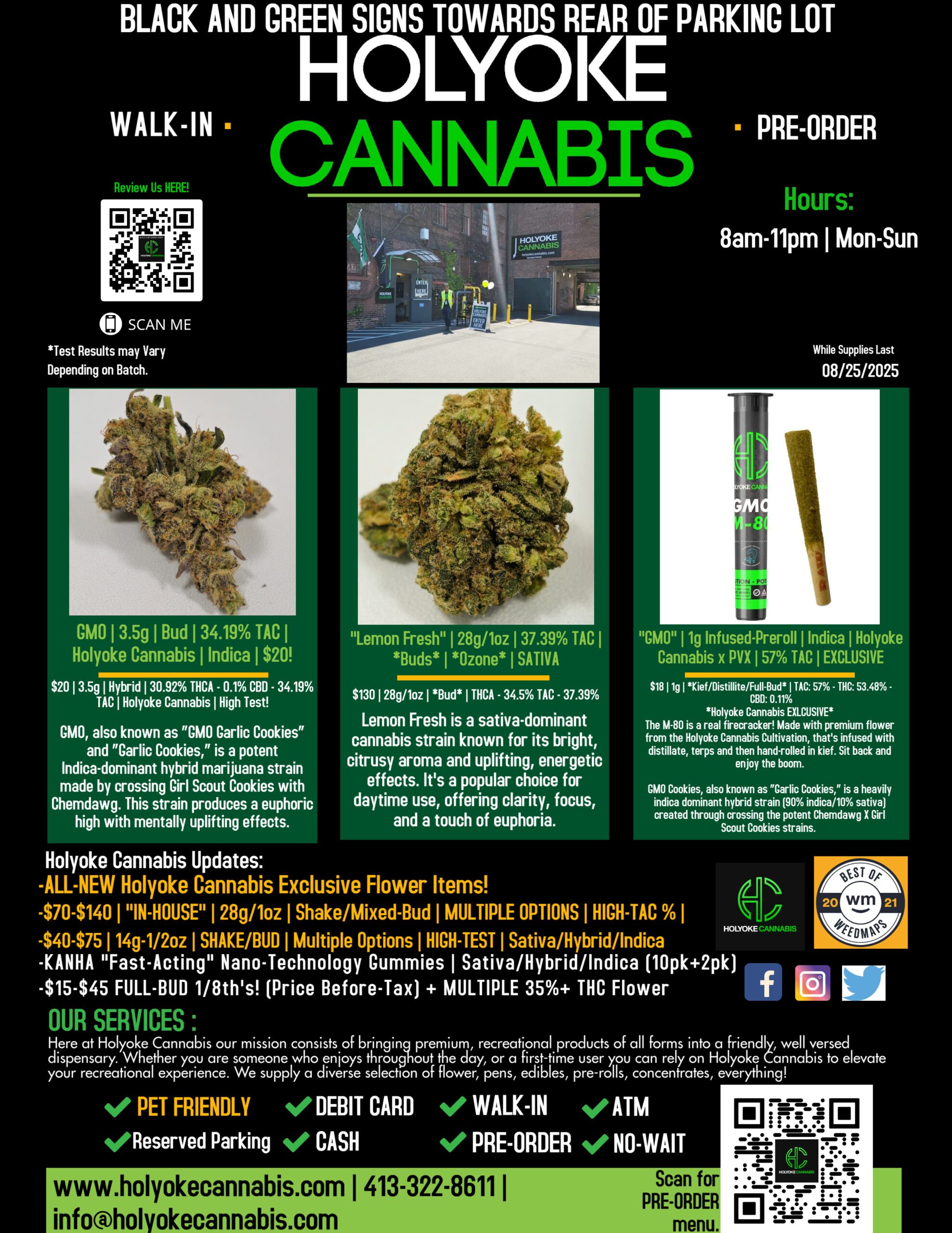 What’s good Holyoke Cannabis stoners? Today we’ll be highlighting the amazing “IN-HOUSE” 28g/1oz – 14g – 7g Bud(~HIGH-TEST~) with Holyoke Cannabis Dispensary. 28g/1oz Full-bud not your thing? We have a TON of flower, edible, and other options at Holyoke Cannabis Dispensary you can check out HERE.