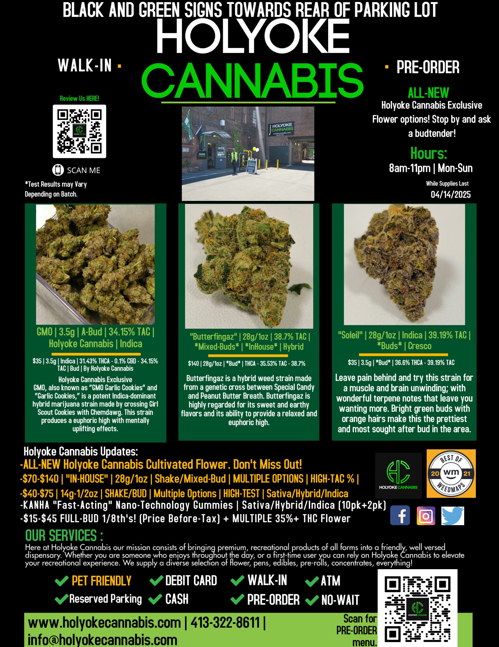 What’s good Holyoke Cannabis stoners? Today we’ll be highlighting the amazing “IN-HOUSE” 28g/1oz – 14g – 7g Bud(~HIGH-TEST~) with Holyoke Cannabis Dispensary. 28g/1oz Full-bud not your thing? We have a TON of flower, edible, and other options at Holyoke Cannabis Dispensary you can check out HERE.