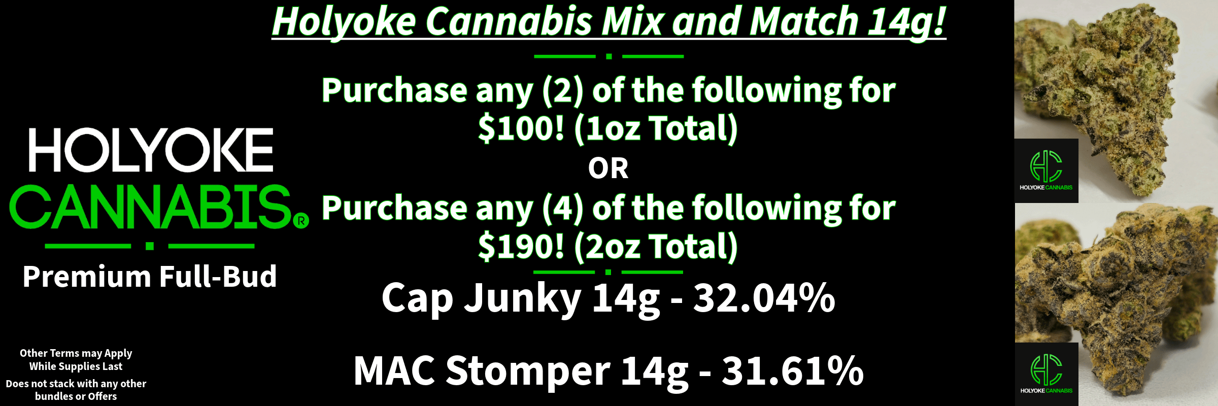 What’s good Holyoke Cannabis stoners? Today we’ll be highlighting the amazing the ALL-NEW Mix and Match Bundle! Holyoke Cannabis flower products are hand-grown and selected by Holyoke Cannabis expert cultivators. Premium Full-bud, pre-ground, shake, ect. Ask about the all-new Flower items offered exclusively by Holyoke Cannabis. Flower and shake not your thing? We have a TON of flower, edible, and other options at Holyoke Cannabis Dispensary you can check out HERE.