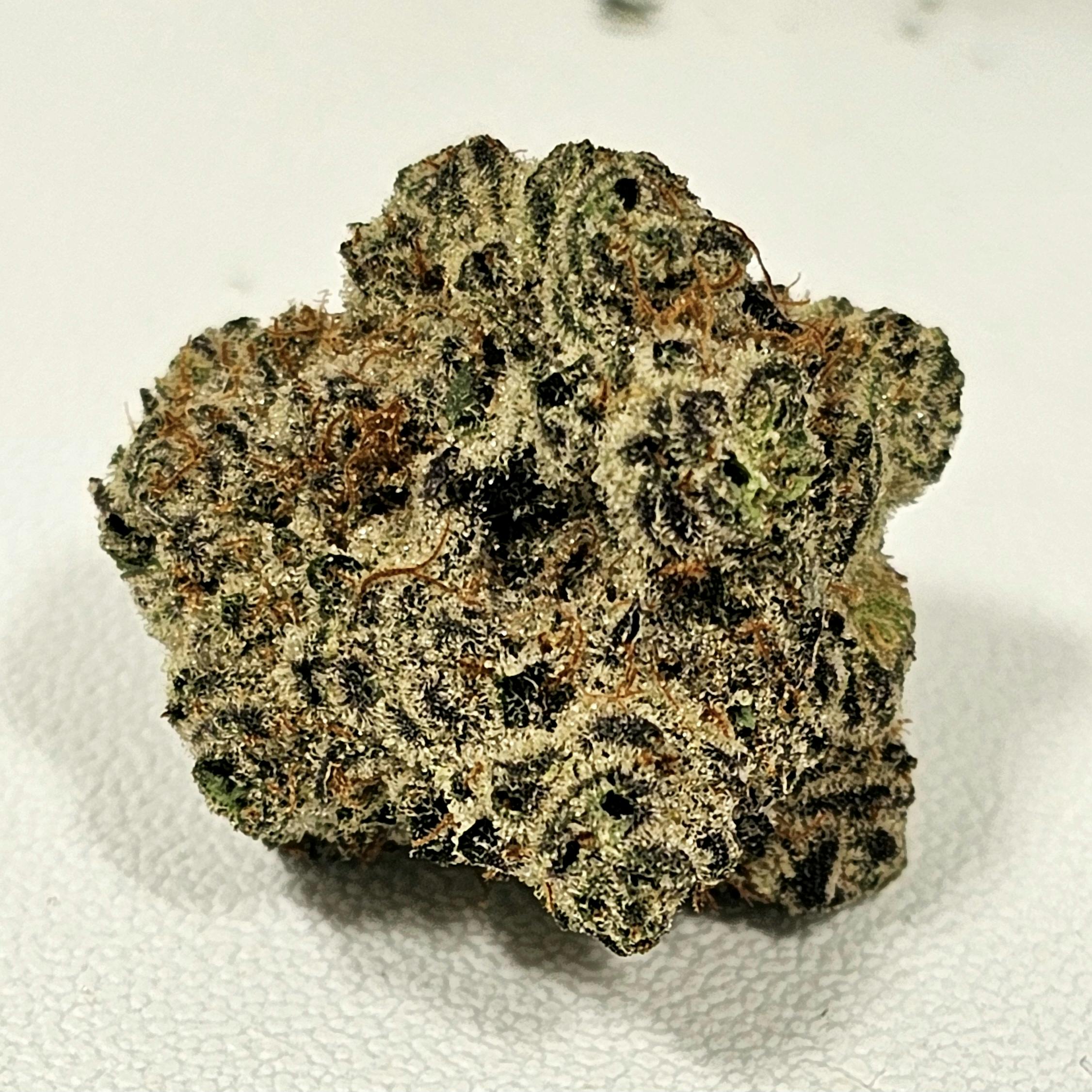 White Truffle is an indica-dominant hybrid marijuana strain that is a type of Gorilla Butter. This strain produces a quick-hitting head high that will clear your mind of worry. Eventually, these effects can be felt throughout your body, leaving you in a relaxing trance. Consumers who have enjoyed White Truffle weed describe the high as “calming and slightly buzzy.” This strain is best when enjoyed after a long day of work or during the evening hours to relax and unwind. White Truffle features a savory and earthy flavor profile accompanied by a mild skunky aroma. White Truffle is dusted by frosty white trichomes and features dark brown hairs.