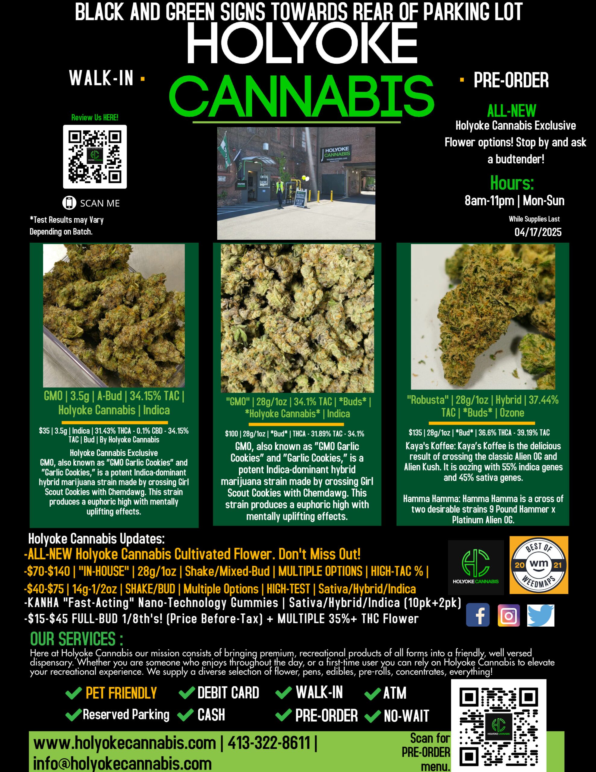 Also available is the ALL-NEW Holyoke Cannabis Exclusive options!